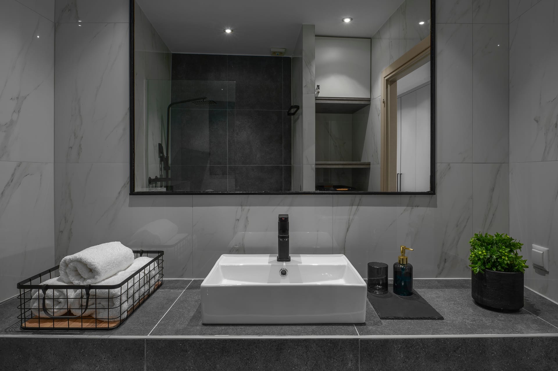 - Ιδιωτικό μπάνιο με ντουζιέρα και προϊόντα περιποίησης